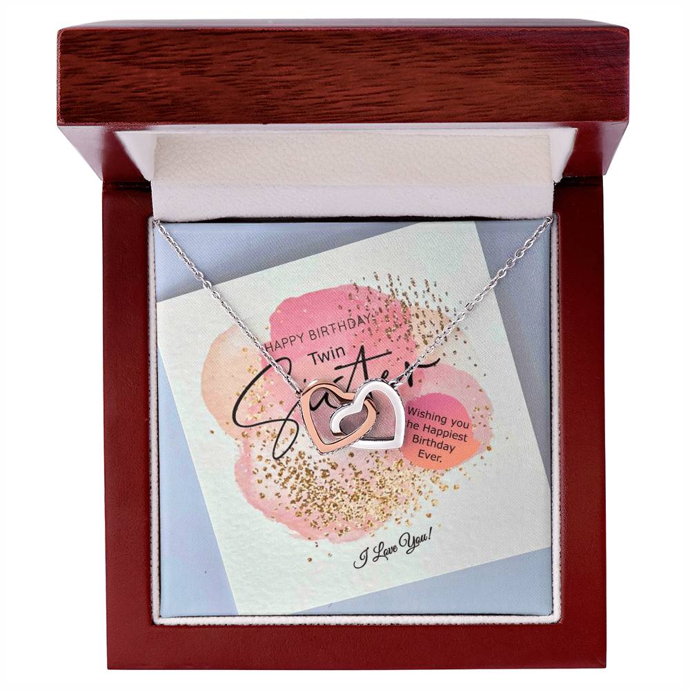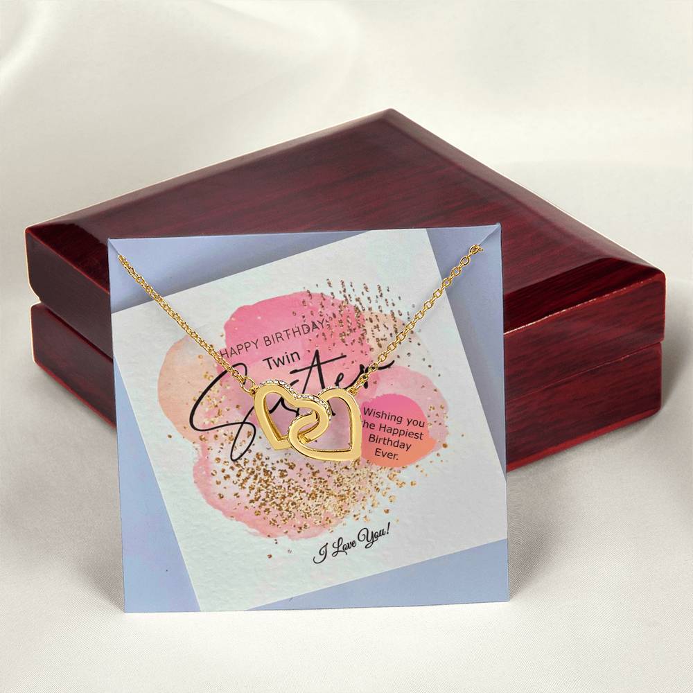 Double Hearts Necklace Happy Birthday Twin Sister Wishing You The Happiest Birthday Ever I Love You Interlocking Hearts Necklace