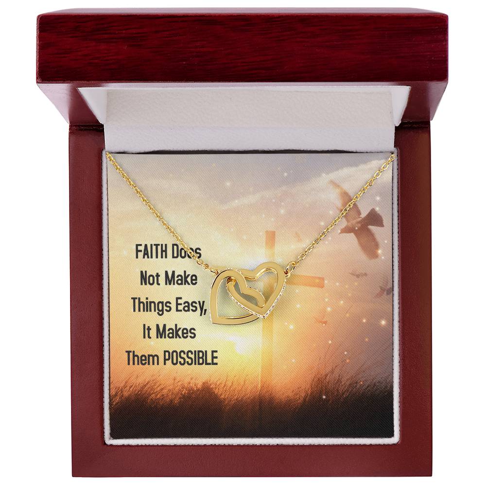 Faith Does Not Make Things Easy It Makes Them Possible Interlocking Hearts Necklace