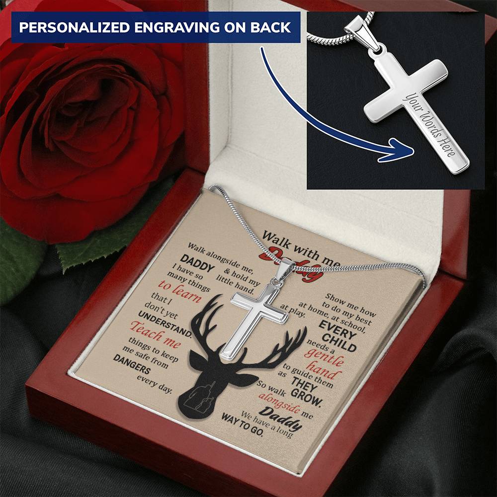 For Dad - Walk With Me - Cross Customize Engraved Cross Necklace