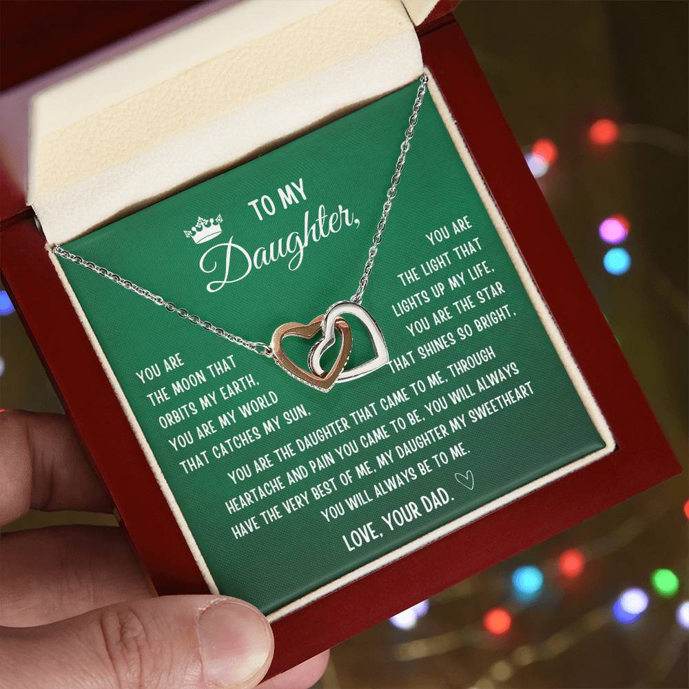 Gift For Daughter From Dad- My Daughter My Sweetheart You Will Always Be To Me Interlocking Hearts Necklace