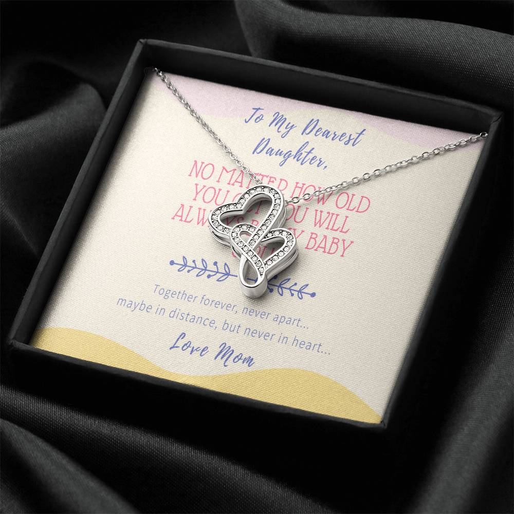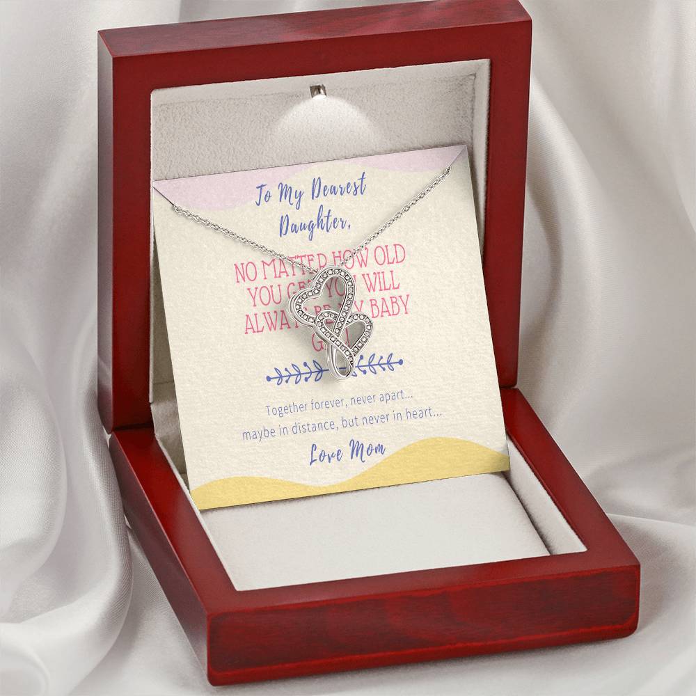 Gift For Daughter From Mom - No Matter How Old You Get You Will Always Be My Baby Girl - Together Forever Never Apart Double Hearts Necklace