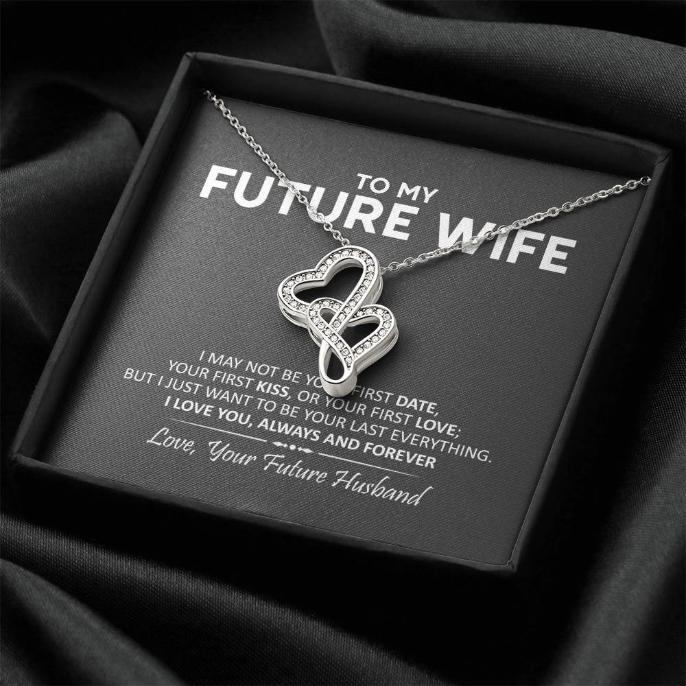 To My Wife Necklace - I Love You Gift For Wife Anniversary Necklace Necklace For Wife Gift For Wife Birthday Valentine Double Hearts Necklace