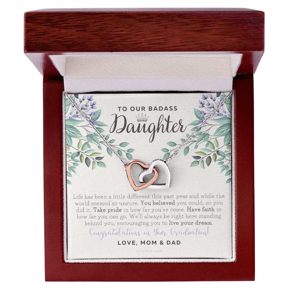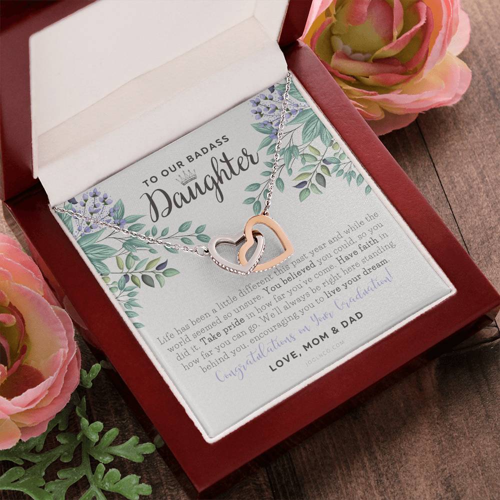To Our Badass Daughter Straighten Your Crown Necklace Parents Daughter Necklace Daughter Graduation Gift Graduation On Pandemic Interlocking Hearts Necklace