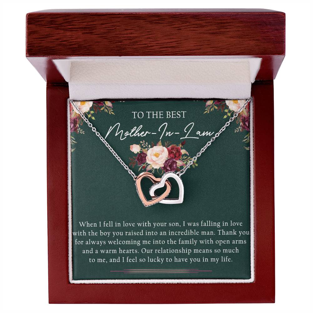 To The Best Mother-In-Law Interlocking Hearts Necklace Message Card