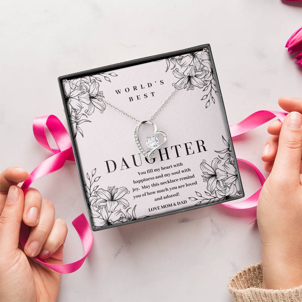 World's Best Daughter Gift 14k White Gold Or 18k Yellow Gold Pendant Necklace Forever Love Necklace