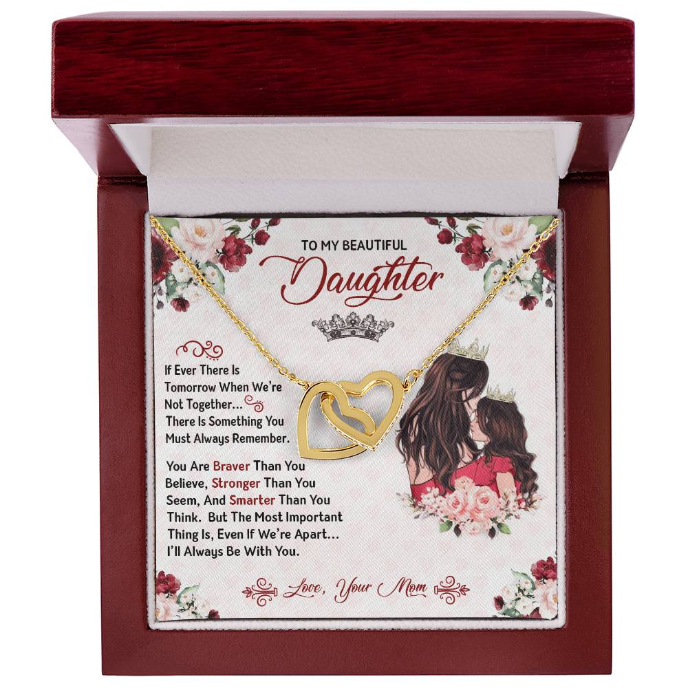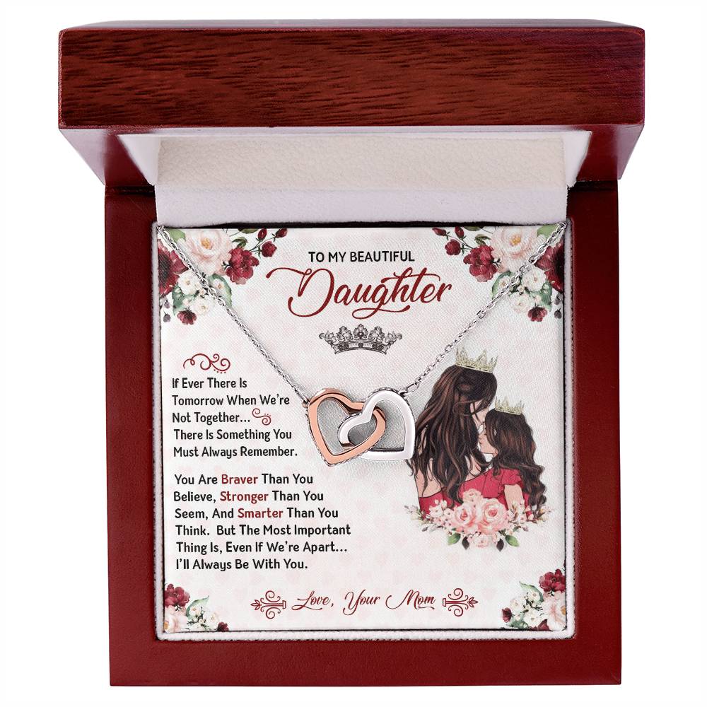 You Are Braver Stronger Smarter Heart Necklace Gift Set - To My Daughter Interlocking Hearts Necklace