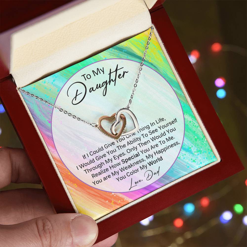You Color My World - Gift For Daughter From Dad Interlocking Hearts Necklace