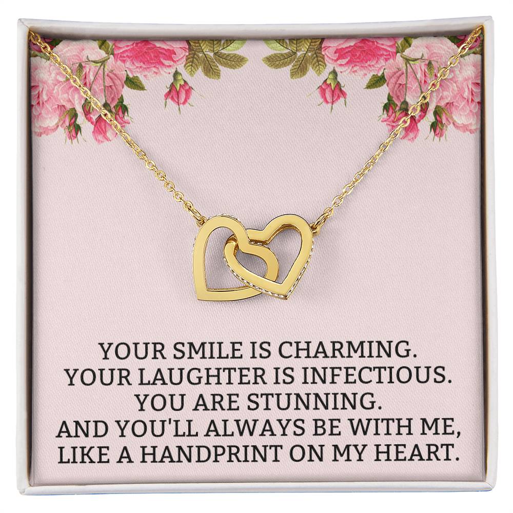 Give her the gift that symbolizes your never-ending love. Featuring two lovely hearts embellished with cubic zirconia crystals, this Interlocking Hearts necklace is the perfect accessory for everyday wear. Whether it's a memorable anniversary or a special birthday, make sure to dazzle your special someone by gifting them this stunning necklace.